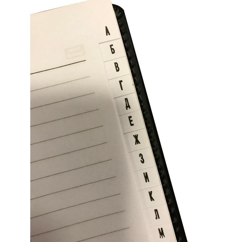 Алфавитная книжка Attache коллекции Вива, размер 133x202 мм. Твердая обложка с отделочной строчкой по периметру изготовлена из высококачественного переплетного материала(искусственная кожа), синего цвета. Бумажный блок офсетной бумаги содержит вырубку под алфавитный регистр, на одну букву приходится 3 страницы. До начала алфавитного блока имеется 14 пустых листов для записей. Внутренний блок содержит 96 листов(192 страницы). Разлинована в линейку. Книжка имеет универсальный формат A5.