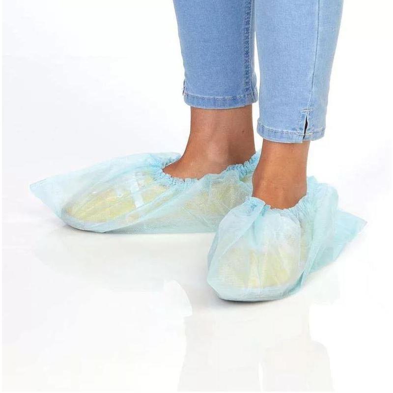 Бахилы низкие одноразовые (голубые). Высота - 18 см., длина следа - 40 см. По верхнему краю собраны на резинку. Изготовлены на автоматической линии из полипропиленового нетканого материала плотностью 25 г/м2, обладающего водоотталкивающими свойствами, воздухопроницаемостью и пониженным ворсоотделением. Не скользят по кафельному покрытию пола. Упакованы в полиэтиленовый пакет. Cтерильно. Срок годности - 4 года.