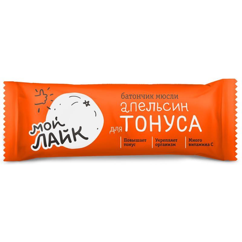 Батончик-мюсли «Апельсин для тонуса» — вкусный, полезный и удобный перекус, качестве основы используются мюсли, огромная польза которых заключается в их составе — они созданы из злаков — пшеница, кукуруза, рожь, рис, ячмень, фруктов — яблоко, ананасы, изюм. Кроме того, в батончике содержится витамин С — он известен как антиоксидант, повышает работоспособность, снижает утомляемость и раздражительность, нормализует состояние кожи, необходим при стрессе.