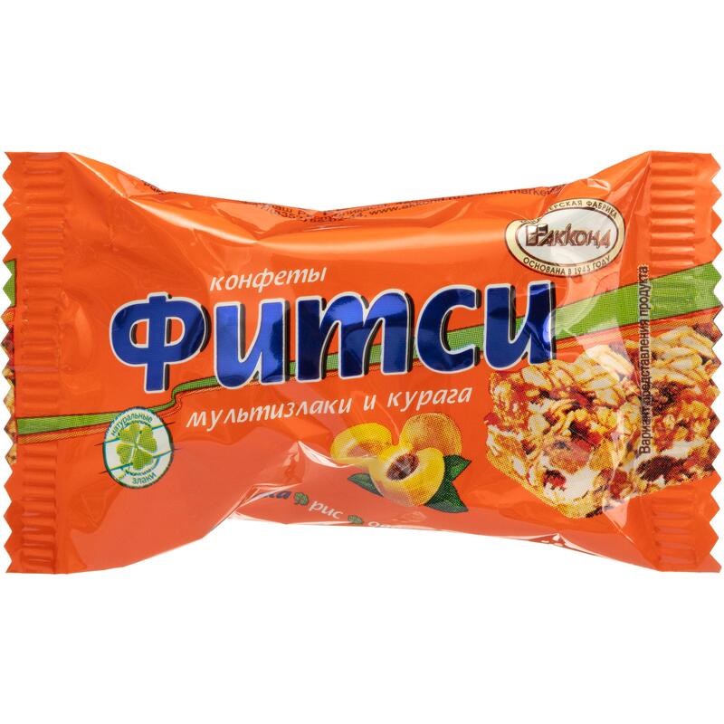 Зерновые конфеты на основе злаков и воздушного риса в натуральном яблочном пюре с кусочками кураги.
