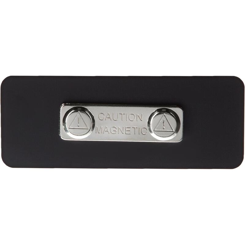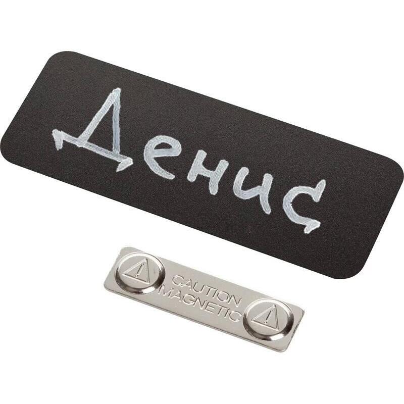 Меловой бейдж Attache для письма меловым маркером или мягким мелом. Изготовлен из черного полипропилена толщиной 1.2 мм. В изделии в качестве крепежного элемента используется магнит. Размер бейджа — 90×35 мм. Углы закруглены.