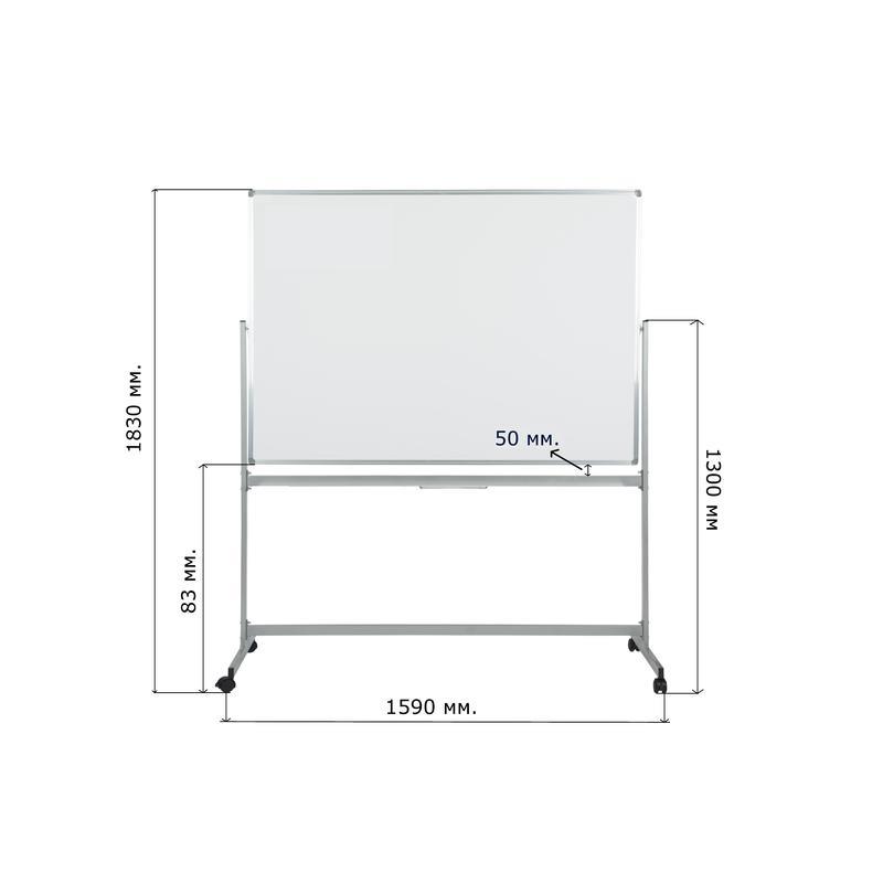 Доска магнитно-маркерная 100х150см, вращающаяся на 360градусов, на роликах, с лаковым покрытием. Простой и удобный узел фиксации позволяет установить полотно доски под произвольным углом.Стойки имеют поворотные колесные опоры, что позволяет легко перекатить магнитно-маркерную доску. Для письма использовать специальные маркеры для магнитно-маркерных досок (см. вкладку расходные материалы).Покрытие магнитно-маркерной доски имеет возможность крепления информации при помощи магнитов, при удалении записей используются только специальные губки-стиратели в комбинации со специализированным спреем, для более тщательной очистки полотна (см. вкладку расходные материалы).Комплектация: - гайка М-6 - 8шт- болт М-6 - 8шт- шайба М-6 - 8шт- винт барашек М8-40 - 1шт- опора колесная со стопором - 2шт- опора колесная без стопора - 2шт- заглушка 20х40 - 4шт- гайка М8 - 4шт- схема сборки - 1штРасстояние между колесами(на одной перекладине): 60см.
