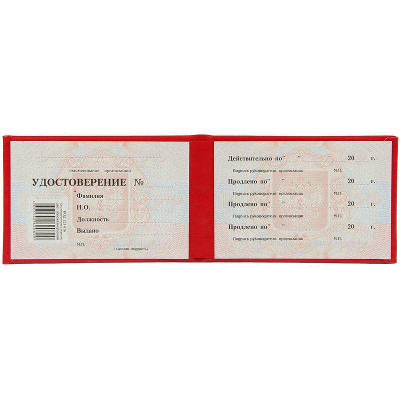 Удостоверение мягкое (на поролоне) из бумвинила красного цвета. На обложке тиснение золотой фольгой: Герб и Удостоверение. Внутри удостоверения цветная выклейка с графами.