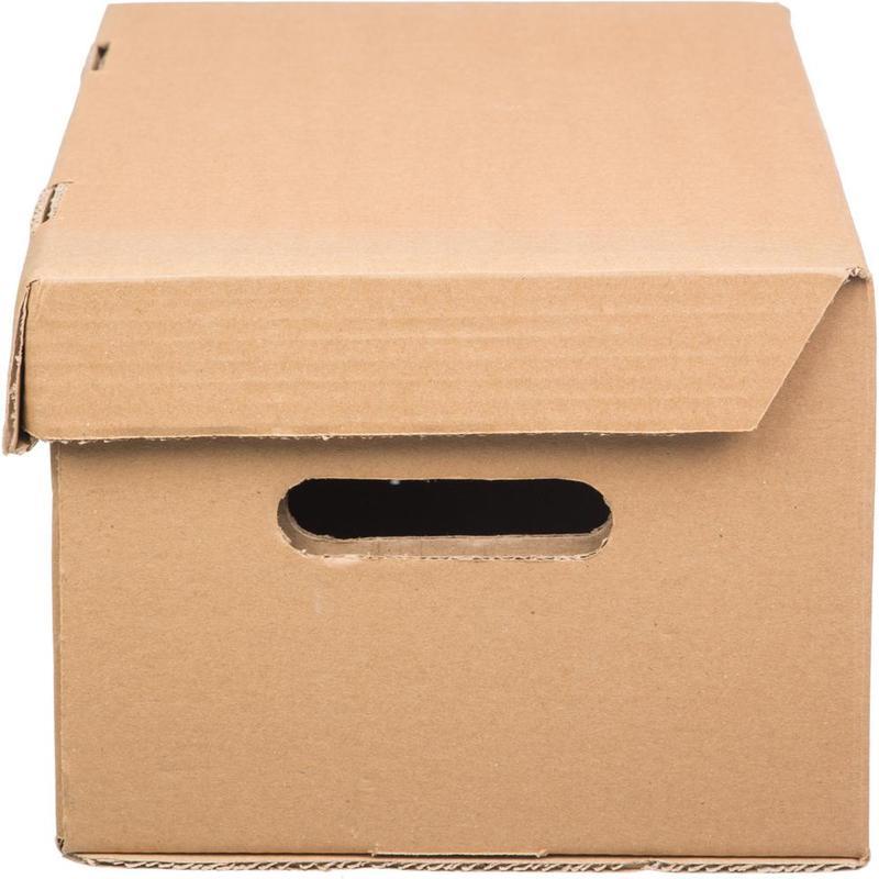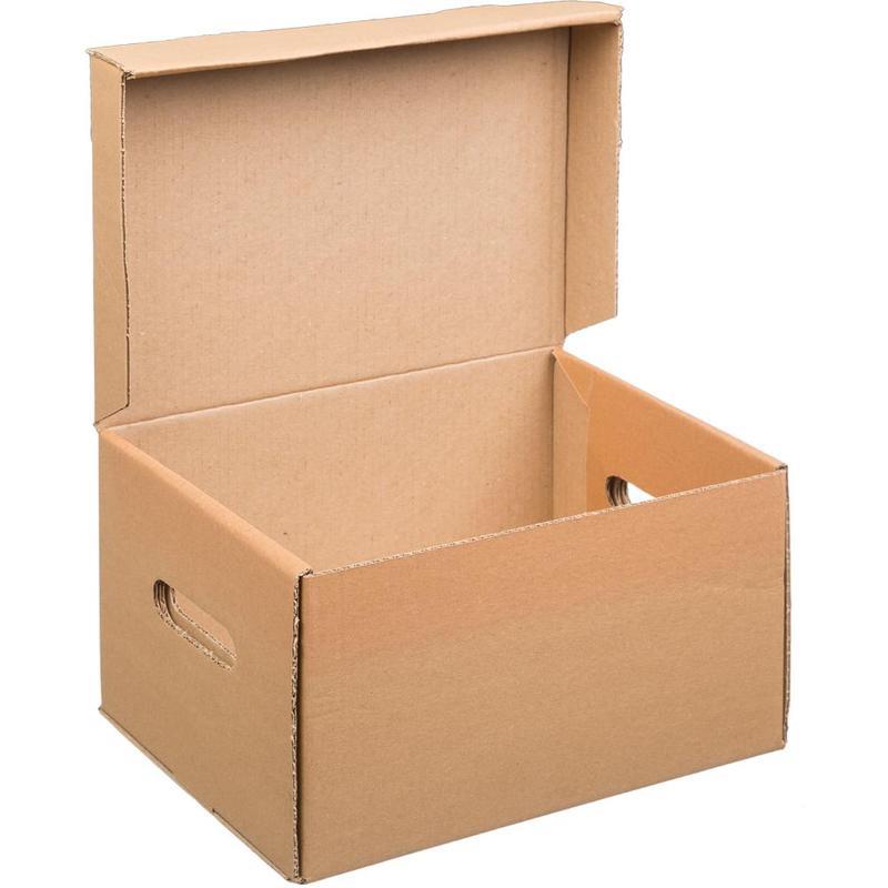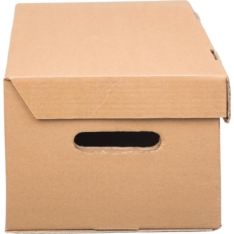 Короб архивный предназначен для хранения и перевозки документов в накопителях или папках-регистраторах. С откидной крышкой. По бокам отверстия для удобства переноски. Внешние размеры 335×245×190. Внутренние размеры — 325×235×180. Поставляется в разобранном виде. Материал — гофрокартон, трехслойный. Цвет — бурый. Производитель — Россия. Папки в комплект не входят.