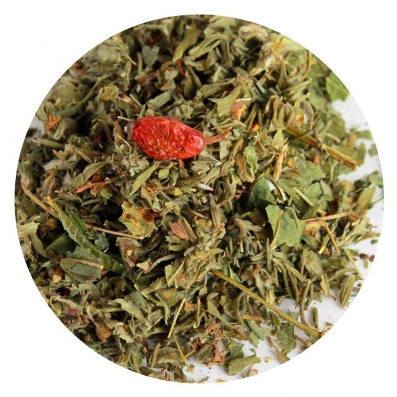 Яркий и вкусный профилактический травяной чай. Входящие в состав компоненты способствуют повышению иммунитета, оказывают легкий тонизирующий эффект. Состав: шиповник (плод), крапива, облепиха (лист и ягода), иван-чай, лабазник, земляника (листья), курильский чай, смородина (лист).