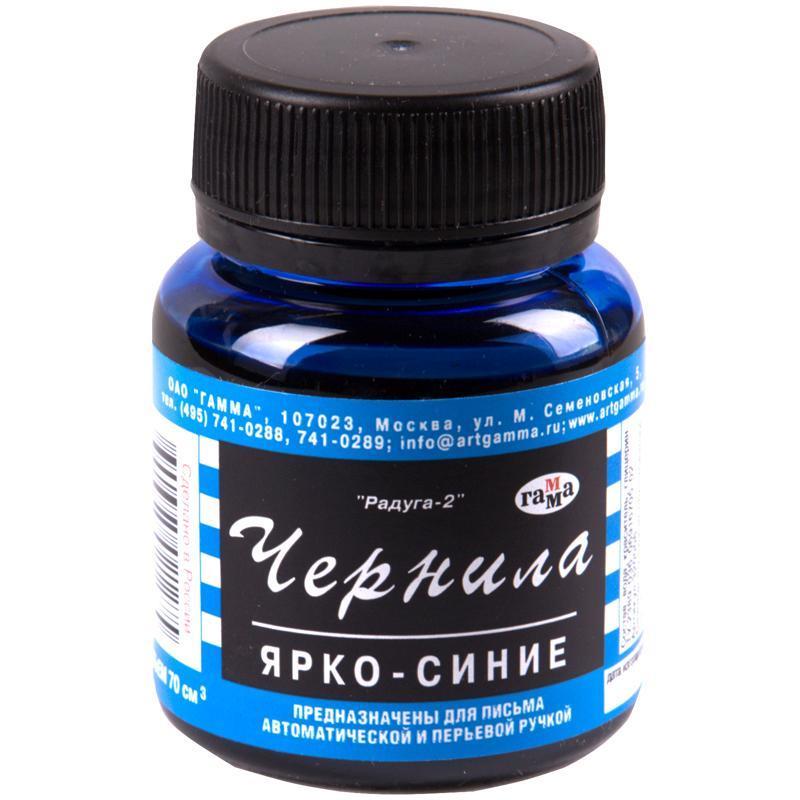 Чернила «Гамма Радуга» ярко-синего цвета предназначены для дозаправки всех типов перьевых и автоматических ручек. Жидкость обладает оптимальной консистенцией, которая не растекается при письме, содержит в составе краситель, воду и глицерин. Чернила поставляются в пластиковом флаконе объемом 70 миллилитров.