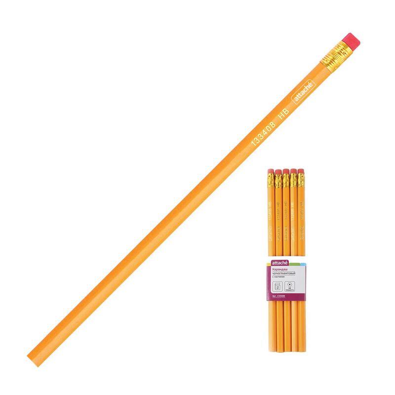 Карандаш чернографитный Attache в шестигранном деревянном корпусе. Поставляется незаточенным, снабжен ластиком. Твердость грифеля — HB.