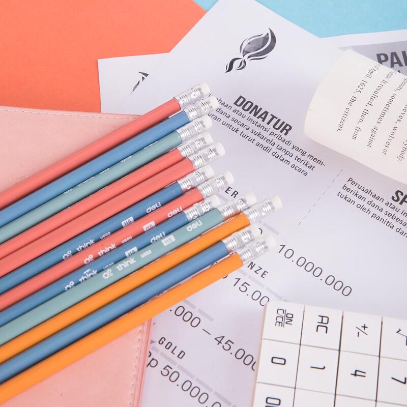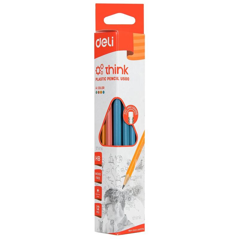 Карандаш чернографитный Deli Think с ластиком обеспечивает легкое, мягкое и комфортное письмо. Карандаш подходит для рисования, где он необходим как основа всего рисунка, перед тем как применять цветные карандаши или фломастеры. Эргономичный трехгранный пластиковый корпус предотвращает соскальзывание пальцев при письме. Легко затачивается и не ломается при падении. Высококачественный грифель сделан из мелко дисперсионного графита и тщательно очищен от примесей. За счет этого штриховка получается равномерной и четкой. Поставляется заточенным и выполнен в 4х нежных тонах: синем, зеленом, розовом, оранжевом. Ластик белого цвета без ПВХ, нетоксичен. Твердость грифеля: HB. Длина карандаша: 188 мм. Материал: пластик.Внимание! Товар поставляется в нескольких вариантах цвета/дизайна (без возможности выбора).