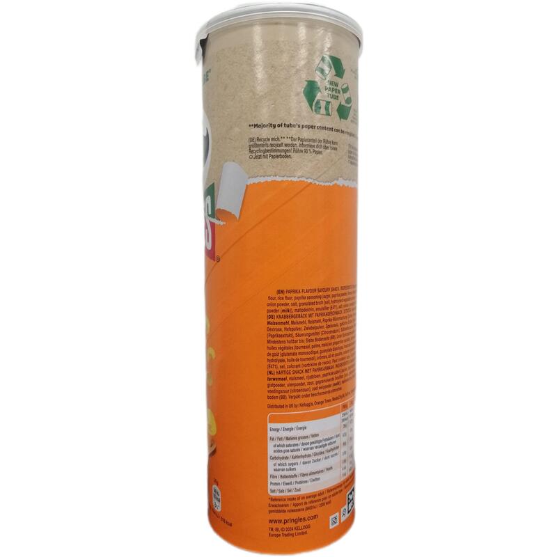 Чипсы Pringles Паприка — это оригинальное сочетание вкуса и аппетитного аромата. Картофель нарезан тончайшими ломтиками правильной формы с добавлением пряных приправ. Обжаренные до золотистого цвета снеки станут отличным дополнением к пиву или самостоятельной закуской между основными приемами пищи. Слайсы гармонично сочетаются с соусами, которые придают особую пикантность чипсам. Pringles зарекомендовал себя на рынке как производитель качественной продукции, использующий отборные ингредиенты. Герметичная упаковка продлевает срок хранения хрустящих ломтиков и предотвращает повреждение снеков.