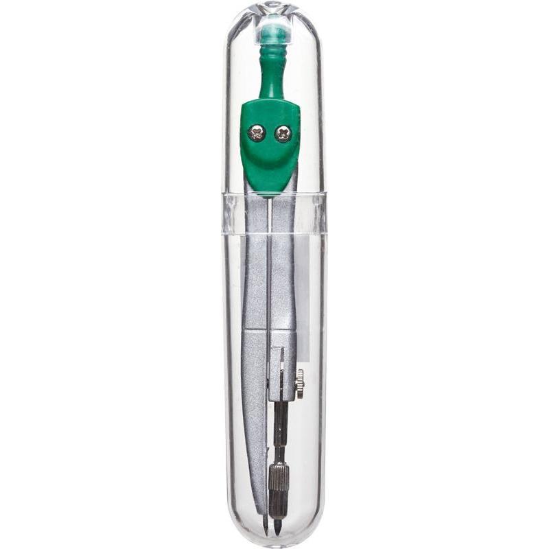 Циркуль из металлического сплава в пластиковой тубе. Длина — 120 мм.Одним из важнейших характеристик является качество крепления подвижных частей циркуля — фиксирующий болт.Предназначен для школьников средних и старших классов.Циркуль комплектуется ударопрочным футляром, что исключает повреждение во время транспортировки, а такжесохраняет циркуль исправным продолжительное время.