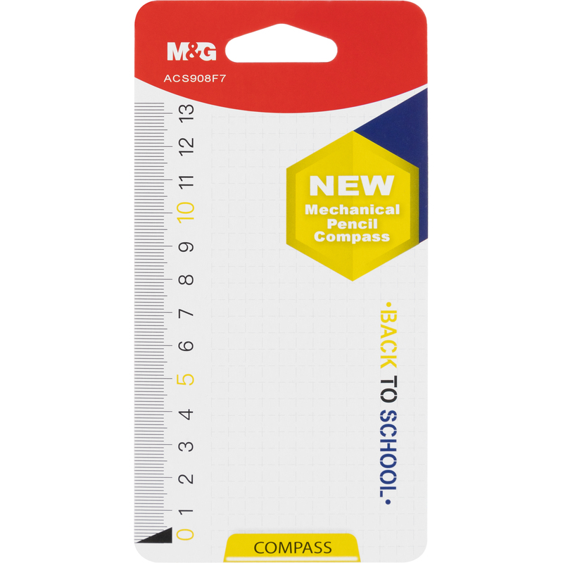 Циркуль M&G Mechanical pencil compass является незаменимым помощником при чертежных работах в школах. Длина — 122 мм. Материал — пластик. Упаковка: блистер, европодвес.