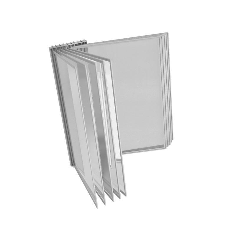 Данная демо-система предназначена для размещения прайс-листов, сертификатов, образцов документов и других справочных и рекламных материалов. Основное преимущество компактных перекидных систем заключается в эргономичности и функциональности конструкции: системы гарантируют сохранность бумажных носителей, экономят место в помещении и обеспечивают удобный доступ к информации большому количеству посетителей.