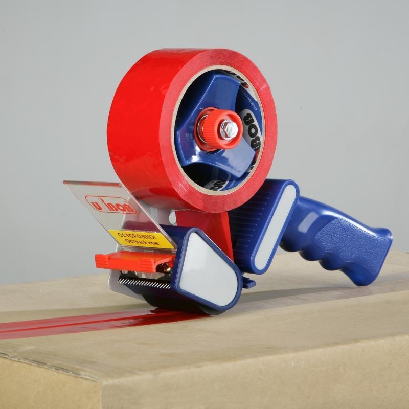Диспенсер Unibob T520RT предназначен для клейкой упаковочной ленты шириной от 50 до 75 мм и длиной до 150 м. Материал корпуса и рукоятки — пластик. Цвет — синий с белым и красным. Имеет винт регулировки натяжения ленты и пластину, защищающую от случайных порезов. Пластиковая ручка эргономической формы предотвращает выпадение диспенсера при работе. Основные рабочие узлы изготовлены из металла, что увеличивает прочность изделия. Необходимое давление при наклеивании обеспечивается прижимным валиком, который не дает ленте смещаться в сторону.Клейкая лента в комплект не входит.В упаковке 1 диспенсер, в транспортом коробе 20 упаковок.