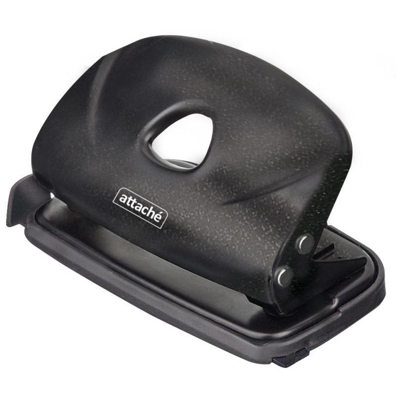 Дырокол Attache Power работает с документами толщиной до 10 листов плотностью 80 г/кв.м. Пробивает два отверстия диаметром 6 мм, расстояние между отверстиями — 80 мм. Удобный контейнер легко открывается и закрывается, исключая рассыпание конфетти. Наличие линейки с делениями на форматы A3, А4, А5, А6, B4, B5, B6 позволяет зафиксировать бумагу на нужном расстоянии, отметка на линейке 888 позволяет использовать вместо дырокола на 4 отверстия. Дырокол выполнен в металлическом корпусе черного цвета.