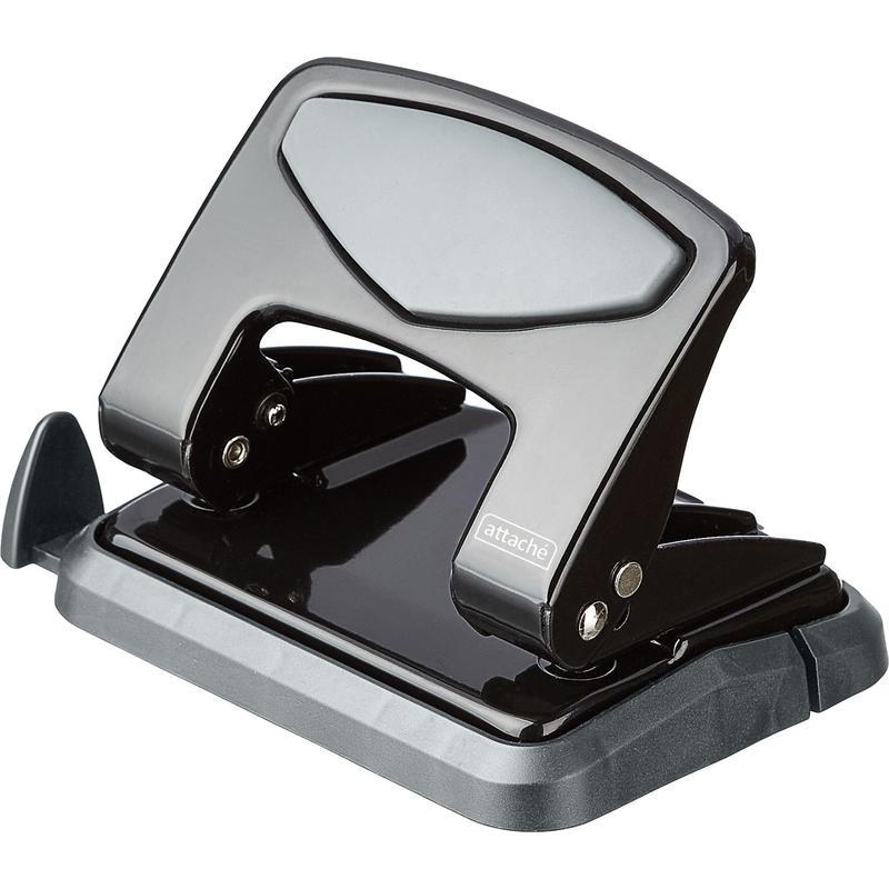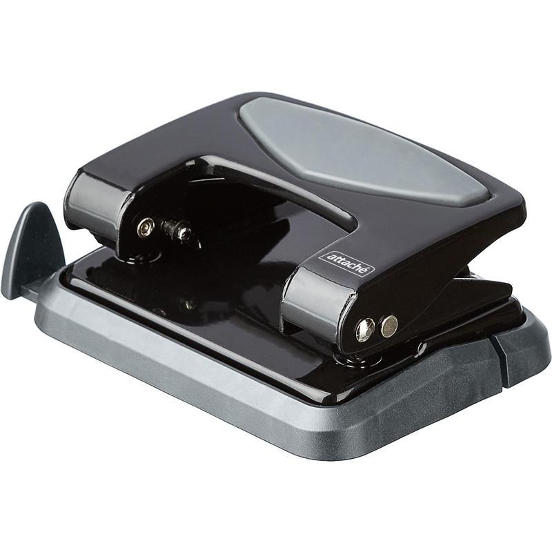 Дырокол Attache работает с документами толщиной до 25 листов плотностью 80 г/кв.м. Пробивает два отверстия диаметром 6 мм, расстояние между отверстиями — 80 мм. Удобный контейнер легко открывается и закрывается, исключая рассыпание конфетти. Механизм металлический.