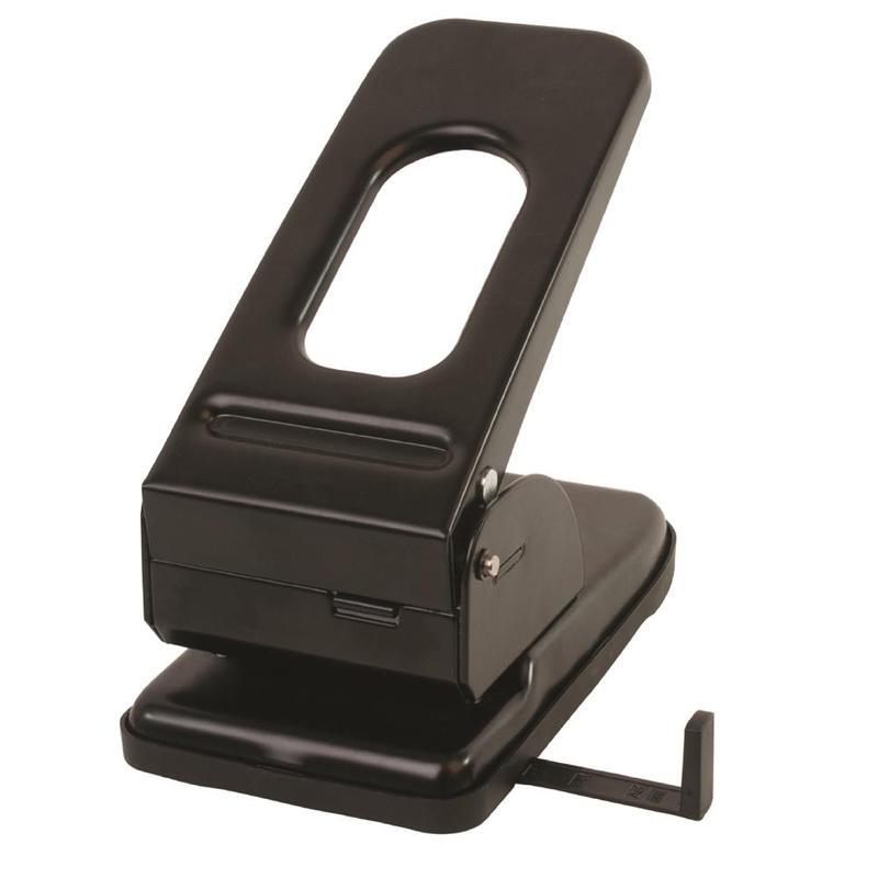 Дырокол работает с документами толщиной до 60 листов плотностью 80 г/кв.м. Пробивает два отверстия диаметром 6 мм, расстояние между отверстиями — 80 мм. Наличие линейки позволяет зафиксировать бумагу на нужном расстоянии. Удобный контейнер легко открывается и закрывается, исключая рассыпание конфетти. Дырокол выполнен в металлическом корпусе черного цвета.