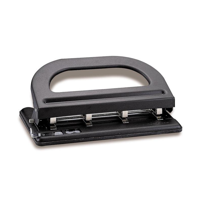 отверстиями.Если выставить ровно, то по 8 см между каждым отверстием. Дырокол снабжен резервуаром для сбора конфетти и линейкой деления на форматы. Выполнен в металлическом корпусе черного цвета. Размер: 325х209х145 мм, регулировка на 2-3-4 отверстия.