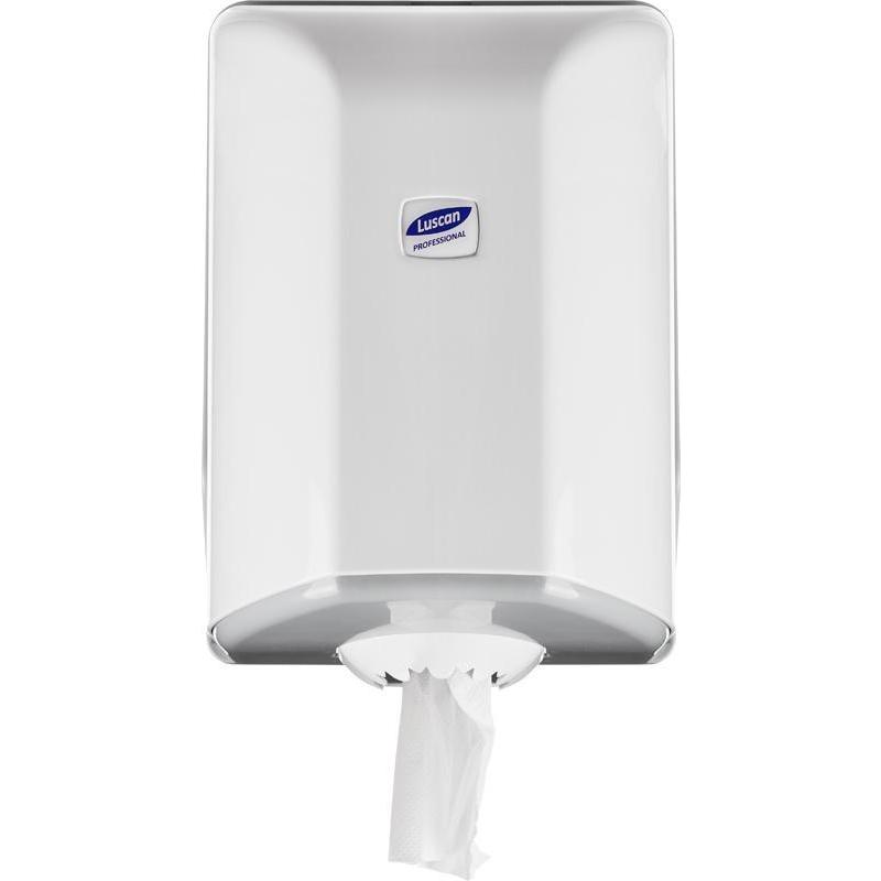 Диспенсер для рулонных полотенец Luscan Professional пластиковый белый (код производителя 479409) Диспенсер для бумажных полотенец в туалетах с интенсивной проходимостью: магазинах, кафе, вокзалах и т. д. Для изготовления использован высокопрочный ABS-пластик белого цвета. Подача полотенец выполняется снизу в центральной части. Для удобного отрыва бумаги в центральной части предусмотрены зубцы.Размер диспенсера (ВхШхГ): 310?220?210 мм.Материал: ABS-пластик.Комплект поставки: диспенсер, ключ, саморезы для крепежа диспенсера.Гарантийный срок: 1 год.