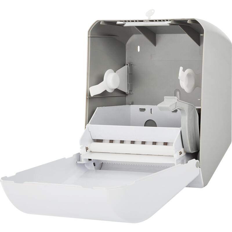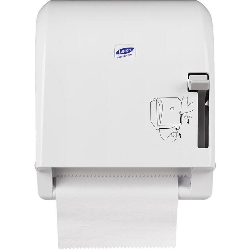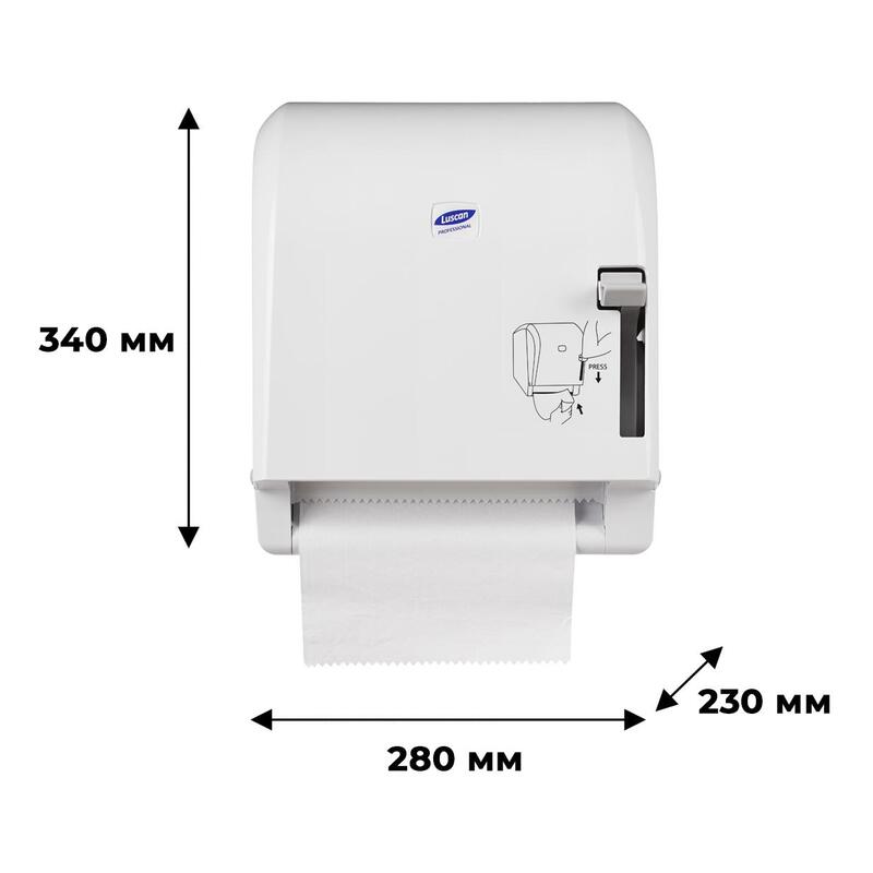 Диспенсер для рулонных полотенец Luscan Professional (H1) пластиковый белый (код производителя 486351). Диспенсер для полотенец рулонных Luscan Professional предназначен для использования в общественных местах с высоким уровнем проходимости — офисных центрах, ресторанах и кафе, аэропортах. Рычаг подачи бумаги используется вместо колеса прокрутки. Изготовлен из белогоABS-пластика. Держатель устанавливается с помощью специальных креплений, входящих в комплект поставки.Размер диспенсера (ВxШxГ): 275×338×240 мм.Материал: пластик.Комплект поставки: диспенсер, ключ и саморезы для крепежа диспенсера.Гарантийный срок: 1 год.