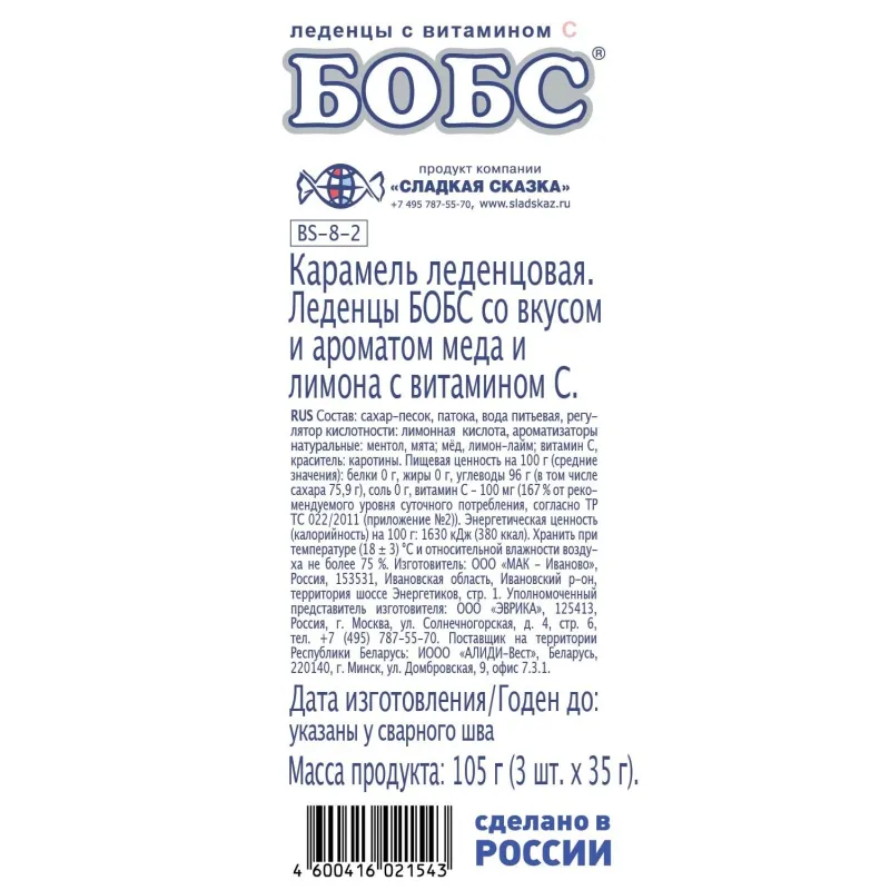Леденцы БОБС медово-лимонные (3 упаковки по 35 г)