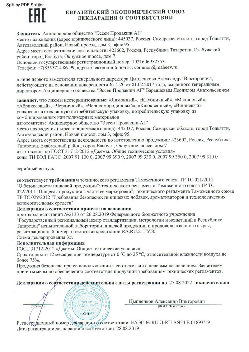 Состав: клубника, сахар, вода, глюкозно-фруктозный сироп, пектин, кислота лимонная, консервант сорбат калия.