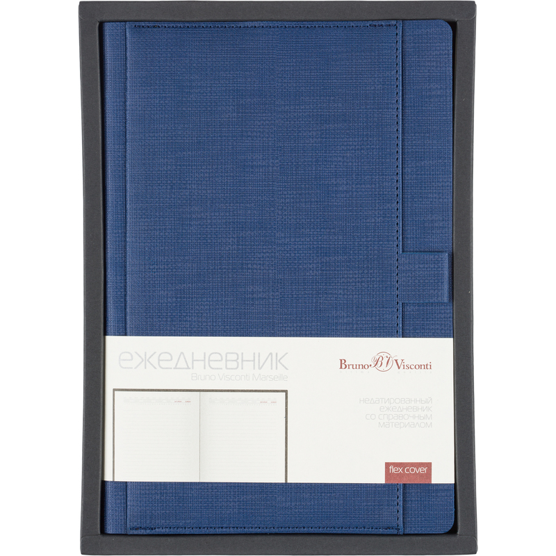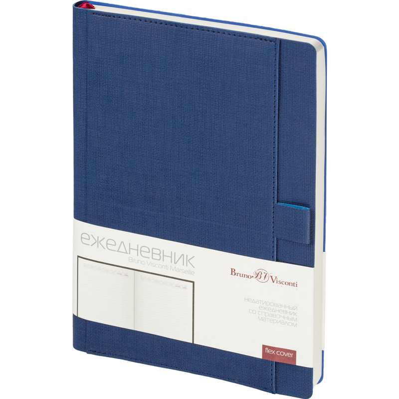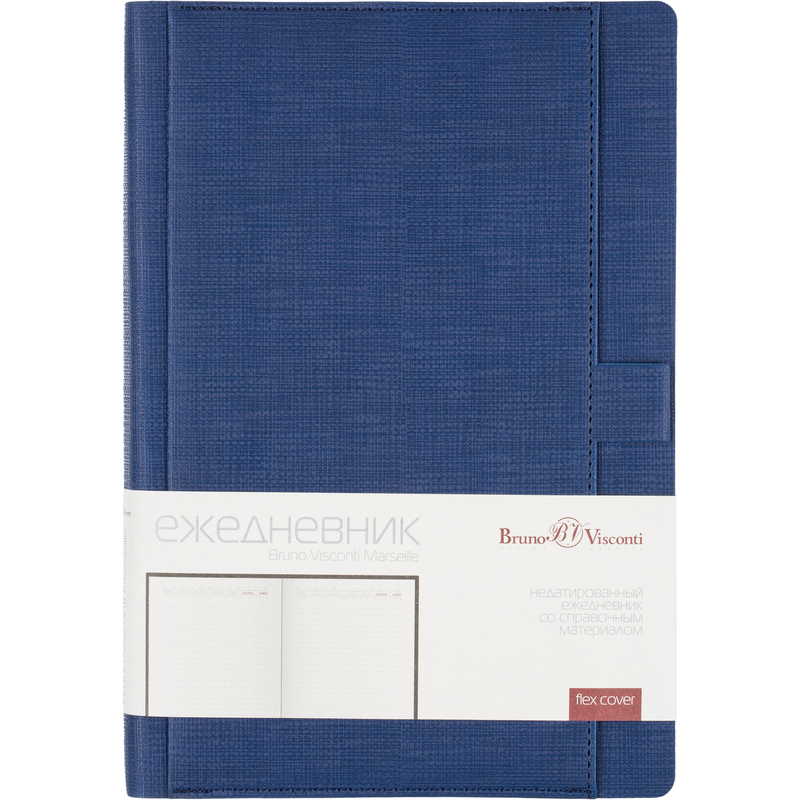 Ежедневник недатированный Bruno Visconti Marseille. Внутренний блок из 272 страниц, бежевая офсетная бумага плотностью 70 г/кв.м, угол блока закругленный. Содержит наружный карман на лицевой стороне обложки (под бумаги, мобильный телефон), петлю под ручку.
