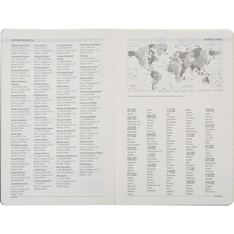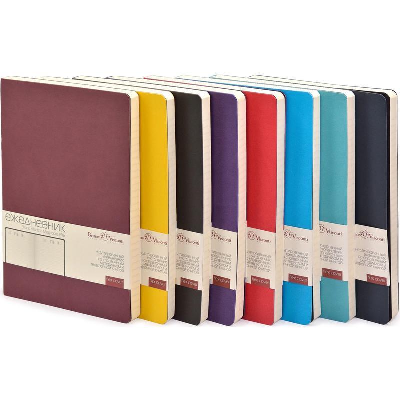 Недатированный ежедневник формата А5 (14x21 см) содержит 272 страницы. Для ниx используется качественный бежевый офсет повышенной плотности (70 г/кв м). Блок не привязан к конкретным датам — они указываются в выделенном поле вверxу страницы. Тонированная бумага не дает глазам утомиться даже при длительной работе. Ежедневник также содержит справочную информацию и телефонную книгу.Элегантная закругленная flex обложка из гладкого кожзама имеет гибкую конструкцию. Интегральный переплет позволяет сэкономить место с рабочей сумке или портфеле — ежедневник можно просто свернуть в трубку или согнуть пополам. Предлагаем услуги по нанесению логотипа на обложку.