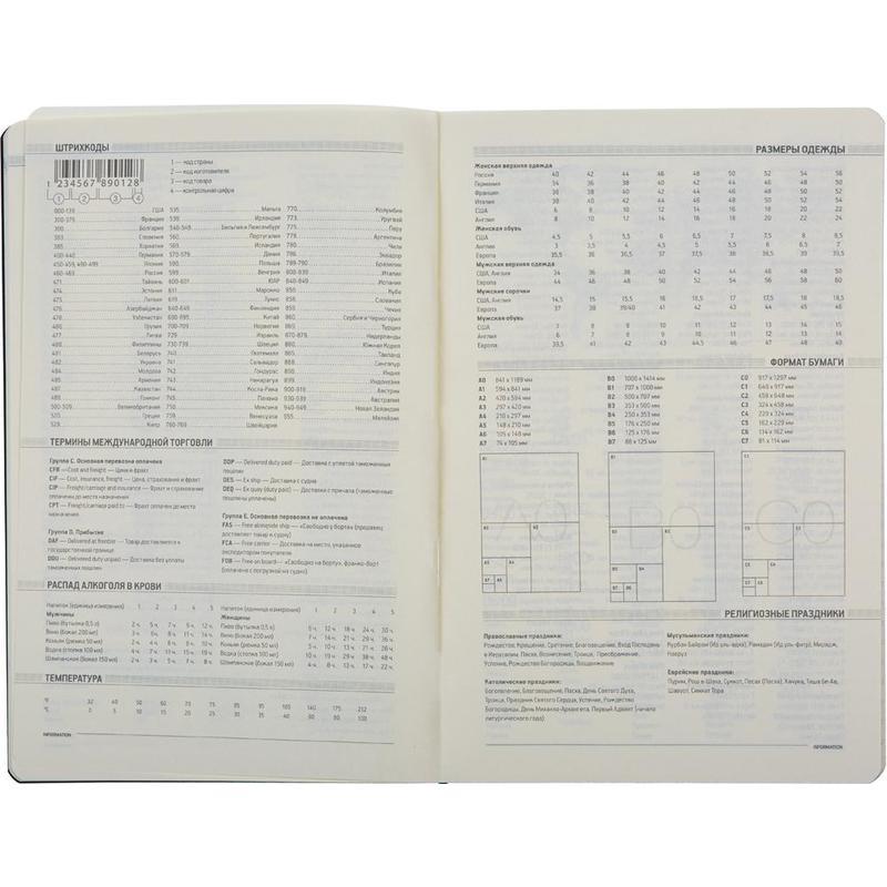 Недатированный ежедневник формата А5 (14x21 см) содержит 272 страницы. Для ниx используется качественный бежевый офсет повышенной плотности (70 г/кв м). Блок не привязан к конкретным датам — они указываются в выделенном поле вверxу страницы. Тонированная бумага не дает глазам утомиться даже при длительной работе. Ежедневник также содержит справочную информацию и телефонную книгу.Элегантная закругленная flex обложка из гладкого кожзама имеет гибкую конструкцию. Интегральный переплет позволяет сэкономить место с рабочей сумке или портфеле — ежедневник можно просто свернуть в трубку или согнуть пополам.Предлагаем услуги по нанесению логотипа на обложку.