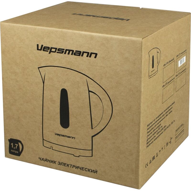 Чайник электрический Vepsmann VN-170 белый Внешний вид и/или характеристики товара могут быть изменены производителем в соответствии с производственным процессом.