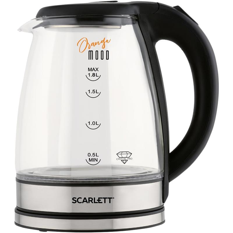 Электрический чайник SC-EK27G36 объемом 1.8 л оснащен традиционной системой открытия крышки. Эргономичная ручка, закрытый нагревательный элемент сделают эксплуатацию прибора еще проще и комфортнее. Внутренняя подсветка позволит наблюдать за завораживающим процессом кипячения. Классический черный цвет корпуса в сочетании с металлической декорацией позволит прибору вписаться в любой интерьер кухни.