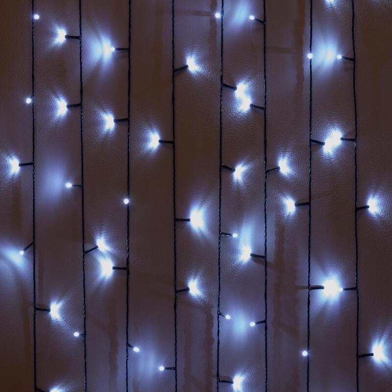 Светодиодная гирлянда для использования внутри помещений. Незаменимый аксессуар для создания новогоднего настроения, а также любого декора и атмосферы, как праздничной, так и романтической. Выполнена в классическом виде - прямая линия со светодиодными лампочками. Безопасна при использовании как на новогодней ели, так и мебели, шторах и т .д. Количество лампочек: 100. Цвет лампочек: холодный белый. Длина: 10,8 м. 8 режимов свечения: вспышка, волна, затухание, мерцание, смена цвета, переливы, хамелеон. Степень защиты: IP20. Тип питания: батарейка и подключение к сети. Соединяемость: нет.