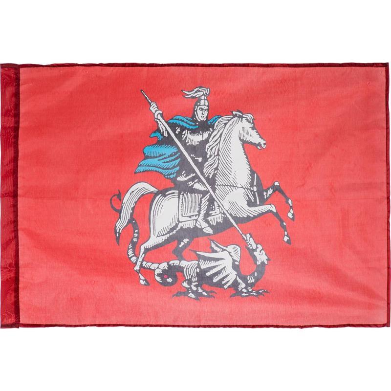 Флаг Москвы — официальный государственный символ города. Изображение Георгия Победоносца на серебряном коне в лазуревой мантии-приволоке, серебряных доспехах, поражающего чёрного змея золотым копьём, на полотнище тёмно-красного цвета. Изображение с одной стороны. Размер: 90x135 см. Размер «кармашка»: 25 мм. Материал: шёлк. Отличный сувенир ко Дню Победы. Флагшток в комплект не входит.