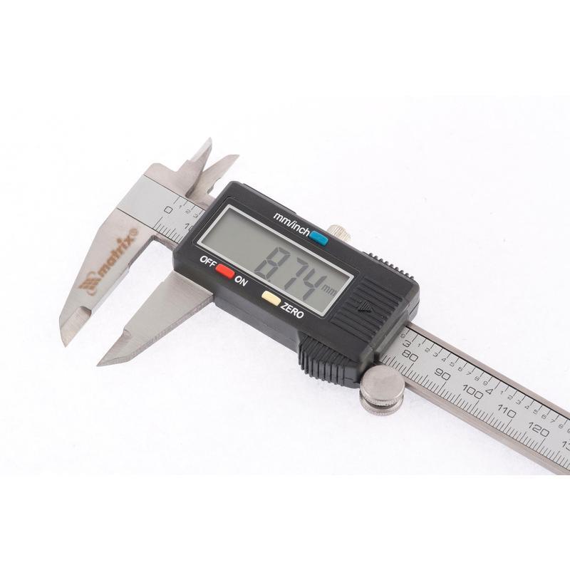 Электронный штангенциркуль 150 мм Matrix 31611 - высокоточный и удобный в использовании измерительный инструмент. Показания измерений отображаются на цифровом дисплее и легко считываются пользователем. Штангенциркуль работает от одного легкосменного элемента питания 1,5 В типа LR44/SR44 (входит в комплект). В комплекте предусмотрен закрывающийся футляр для безопасного хранения и транспортировки изделия.