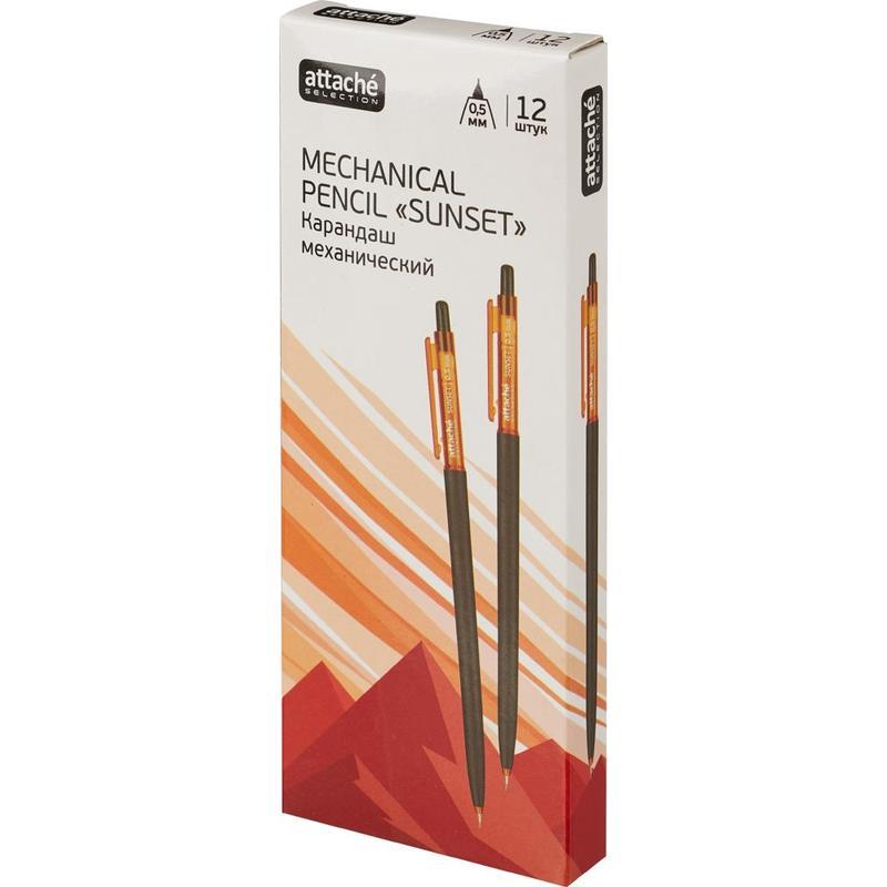 Карандаш механический Attache Selection Sunset с толщиной линии письма 0,5 мм. Выполнен в пластиковом прорезиненном противоскользящем корпусе черно-оранжевого цвета с клипом. Предназначен для рисования, черчения и письма. Отличается точностью и аккуратностью письма.