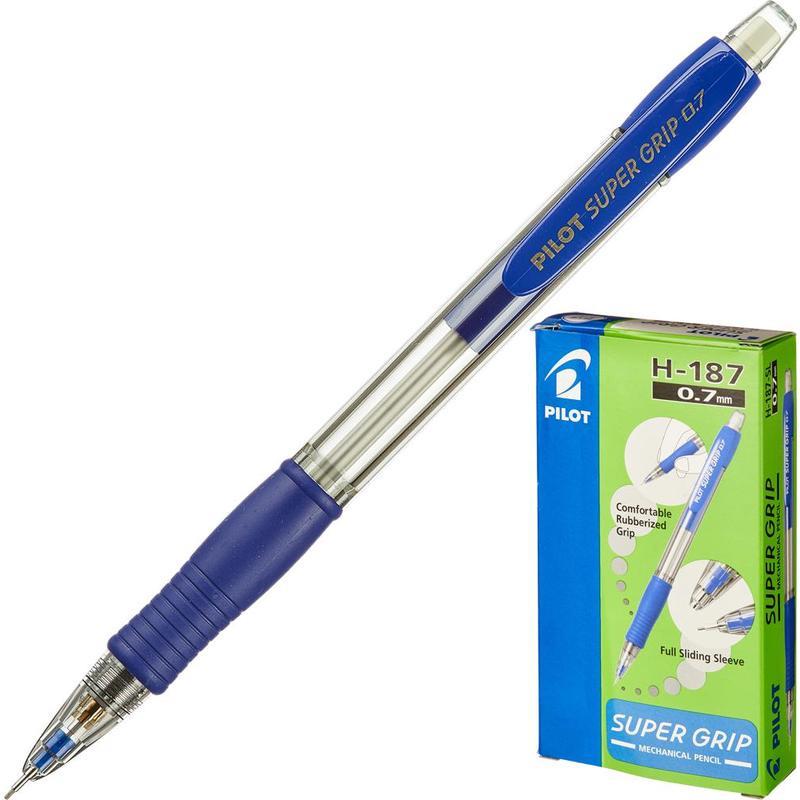 Карандаш механический Pilot H-187 с толщиной линии письма 0,7 мм. Выполнен в прозрачном корпусе с синими вставками. Обладает убирающимся цанговым механизмом, противоскользящей манжеткой и ластиком, прикрытым колпачком. Сменный стержень для карандаша вы сможете найти во вкладке «Расходные материалы». Страна-производитель — Япония.
