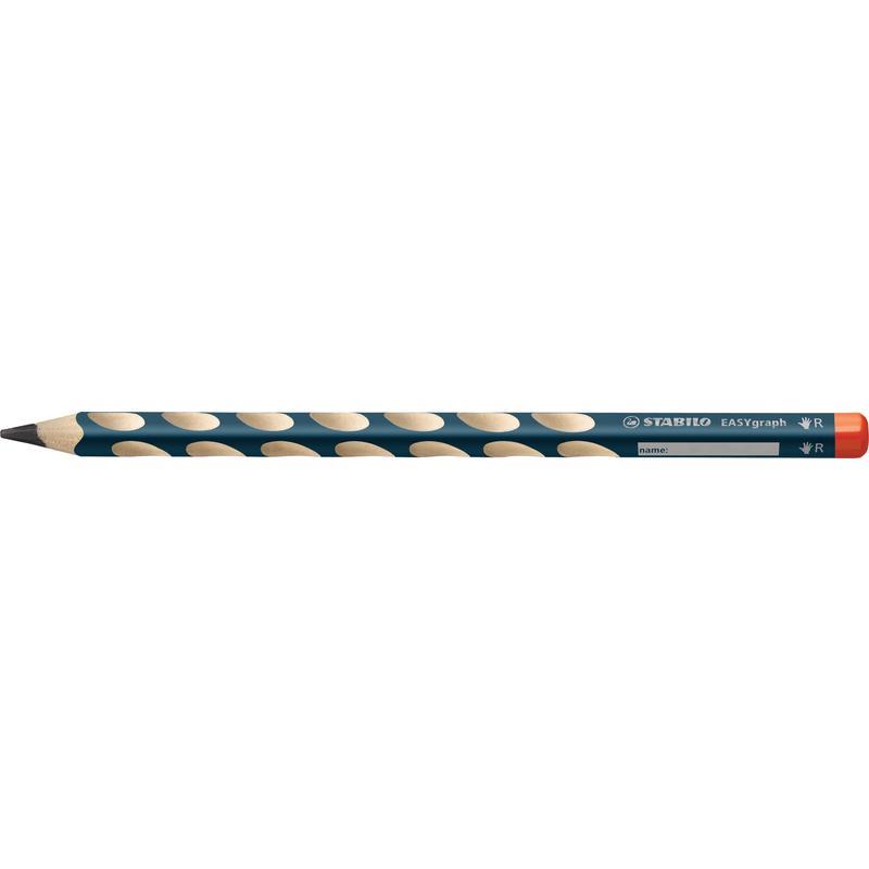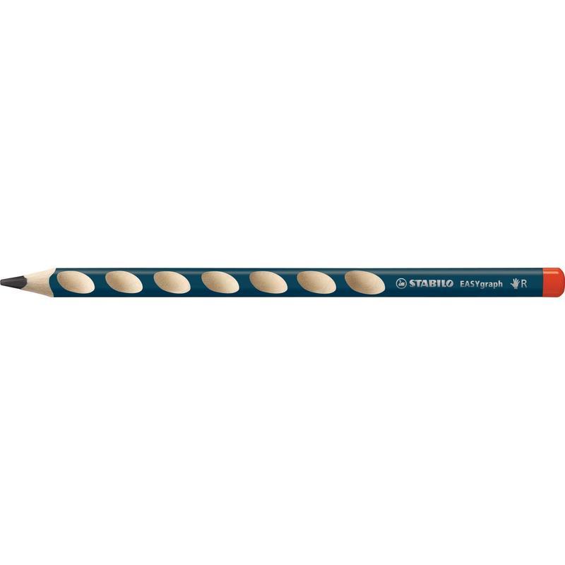 Чернографитный карандаш для правшей. Специальные углубления на корпусе карандаша, адаптированные для правшей, предотвращают скольжение пальцев при письме и фиксируют их в правильном положении. Это позволяет свести к минимуму необходимые усилия для удержания карандаша в руке. Специальная маркировка «R» на корпусе и красный цвет торца позволяют легко определить принадлежность для праворуких. Утолщенный грифель карандаша отличается особой яркостью и стойкостью к поломкам. Твердость НВ. Диаметр карандаша — 8 мм.