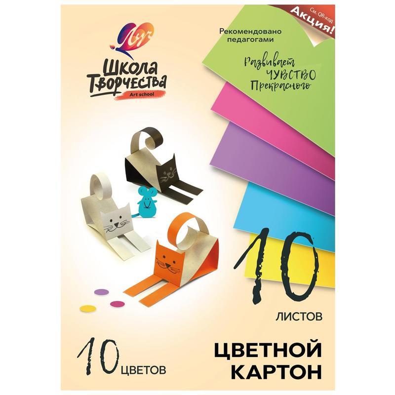 10 листов цветного картона из качественного прокрашенного картона плотностью 220г/м3 упакованы в папке из высококачественного мелованного картона плотностью 230г/м3. Честный размер А4 формата — 210x297 мм.