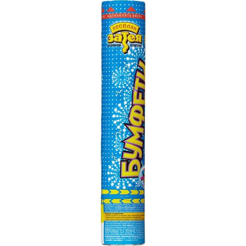 Пневматическое устройство, абсолютно безопасное, предназначено для использования в большом помещении и на улице, дальность выстрела 7–8 м. Корпус изделия «Бумфети» состоит из двух частей: пневматического баллона со сжатым воздухом и картонного цилиндра с наполнителем. Баллон изготовлен из металла, надёжен и безопасен при хранении и в использовании, обладает высокой прочностью, чтобы выдержать давление воздуха. Выстреливает разноцветным серпантином из фольги. Веселье гарантировано! Размер изделия: 20 см.