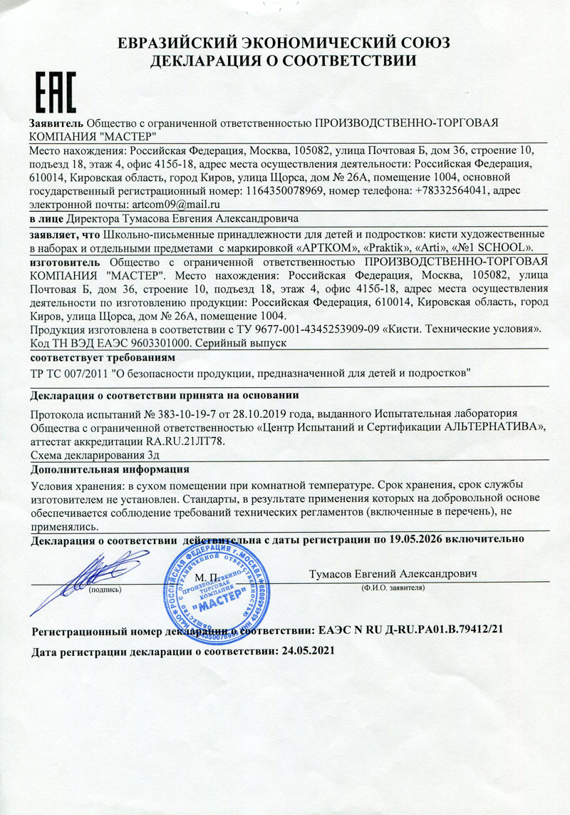 Кисть подходит для работы с акварелью, гуашью, тушью, а также для прорисовывания различных деталей рисунка.