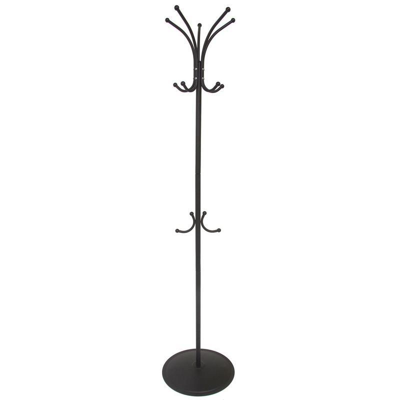 Изящная классическая металлическая вешалка для посетителей. 5 крючков для одежды, 5 для головных уборов и 2 крючка для сумок делают ее удобной для использования в офисах, кафе, салонах. Пластиковые шарики идеально подходят под размер петель верхней одежды. Вешалка легко собирается менее, чем за минуту. Полимерное покрытие надежно защищает вешалку. Основание вешалки — стальной блин, обеспечивающий хорошую устойчивость.