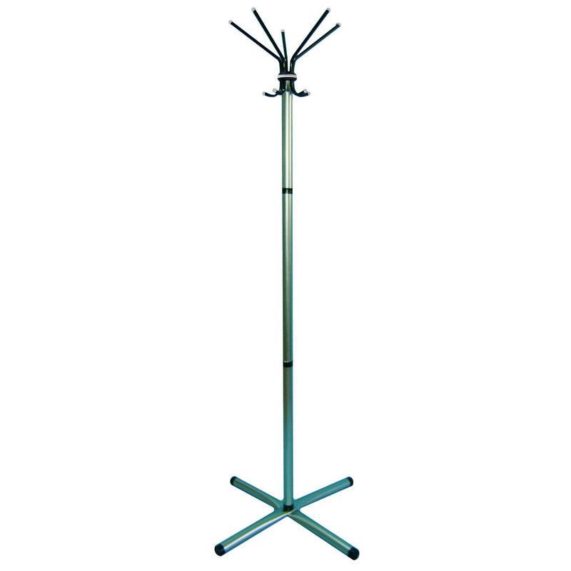 Вешалка напольная Attache выполнена из оцинкованной стали, устойчивой к коррозии. Рассчитана на 5 персон. Вешалка окрашена в цвет «алюминий», крючки и перекладины — черные Поставляется в разобранном виде. Размеры: основание 52x52 см, высота 184,5 см. Нагрузка на верхний крючок для головных уборов — 1 кг. Нагрузка на нижний крючок для одежды — 5 кг. Максимальная распределенная нагрузка на вешалку — 20 кг.