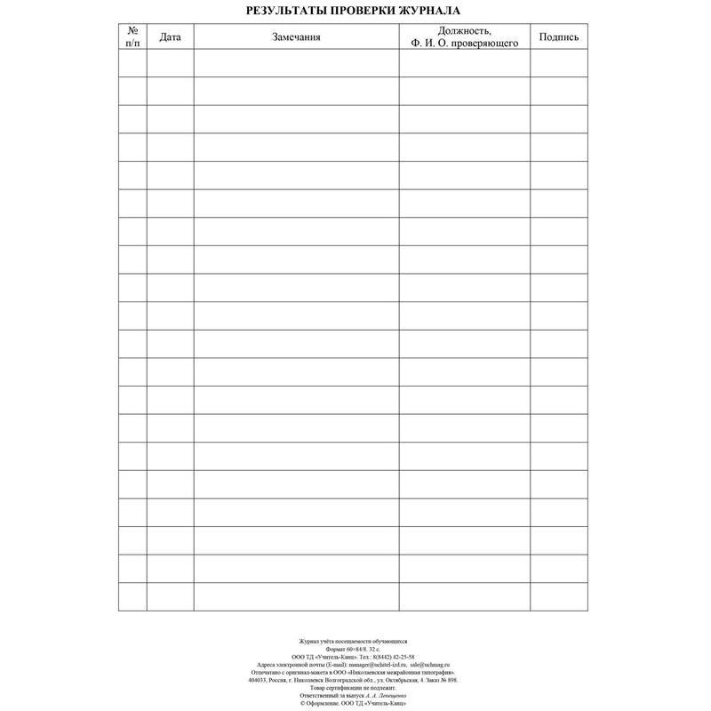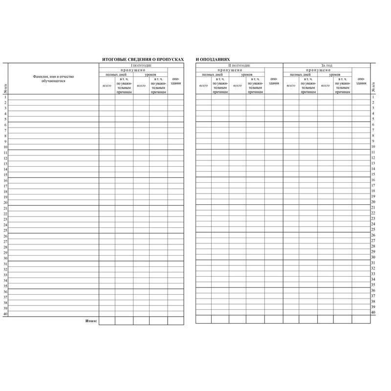 В журнале учета занятий фиксируются сведения о ежедневной посещаемости учащихся, о причинах пропусков. В итоговой таблице отображаются результаты за четверти, полугодия, год.