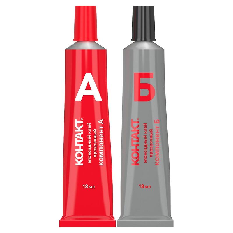 Клей эпоксидный Контакт двухкомпонентный прозрачный, 2×18 мл — клей на основе полиэпоксидной смолы и отвердителя. Предназначен для различного домашнего ремонта. Клеевой шов масло-, бензо-, водостойкий, не дает усадку и не расширяется при отвердевании. Эпоксидный клей заполняет пустоты, трещины, зазоры.