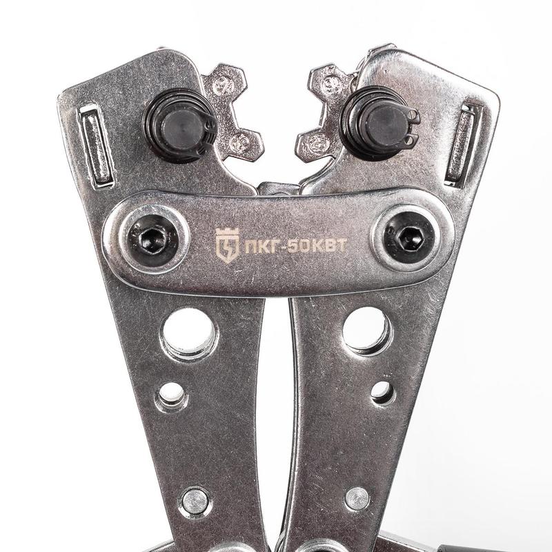 Предназначены для применения при электромонтажных работах. Модель используется с наконечниками (медь) от 6 до 50 кв.мм. Пресс-клещи снабжены самофиксирующимися матрицами револьверного типа, которые могут быть легко заменены на необходимый типоразмер. Инструмент изготовлен из стали 5 мм с последующим хромированием, что обеспечивает долгий срок службы. Длина — 390 мм.Внешний вид и/или характеристики товара могут быть изменены производителем в соответствии с производственным процессом.