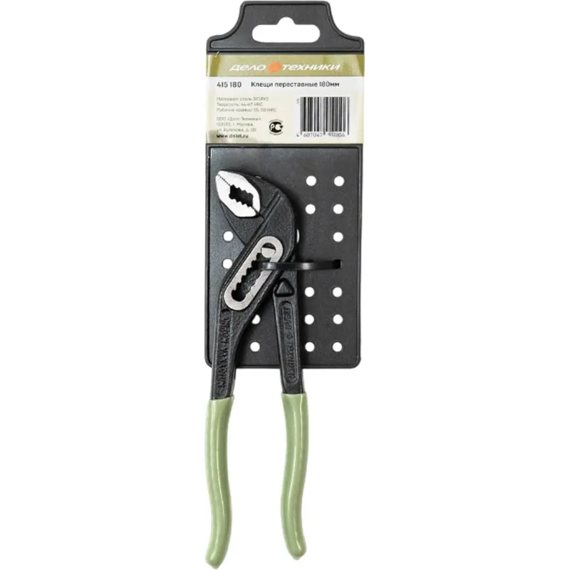 Клещи переставные используются в качестве трубного или разводного ключа. Также могут применяться для фиксации и отворачивания/заворачивания предметов, не имеющих специального рабочего профиля. Клещи гарантируют прочный захват различных по форме и диаметру предметов. Длина: 180 мм. Внешний вид и/или характеристики товара могут быть изменены производителем в соответствии с производственным процессом.