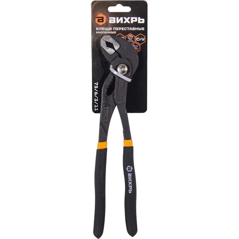 Клещи переставные Вихрь 250 мм (73/6/3/11) обеспечивают надежный захват и фиксацию различный предметов. Могут использоваться для монтажа и демонтажа крепежных элементов, обработки труб и других работ. Они заменят разводной или трубный ключи.