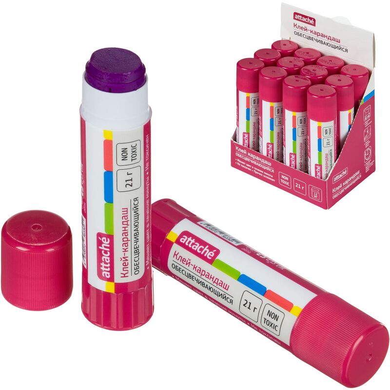 Клей-карандаш Attache Selection круглой формы на ПВП-основе предназначен для склеивания бумаги, картона, фотобумаги и т. д. Вес — 21 г.Классическая круглая форма корпуса эргономична, удобно лежит в руке и позволяет более точно наносить клей. Содержит цветовой пигмент. Морозостойкий. Не токсичен.Легко очищается с одежды, рук, не вызывает аллергии. Клей расходуется экономично, склеивает в течение 1 минуты.