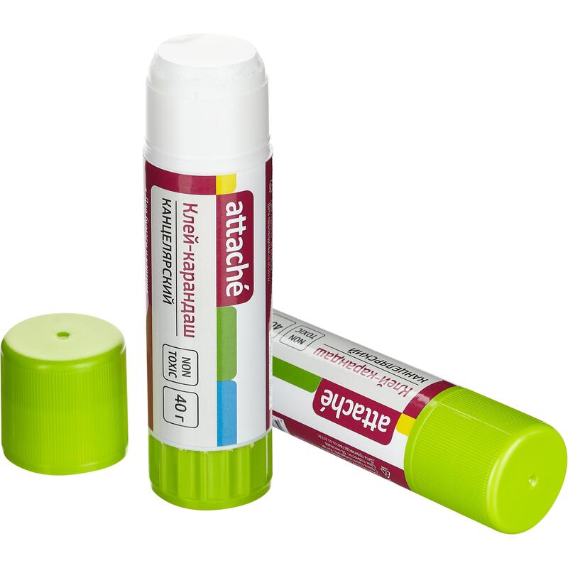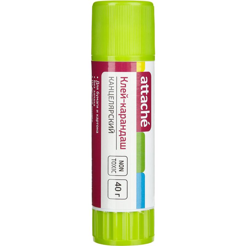 Клей-карандаш Attache предназначен для склеивания бумаги, картона. Основа клея содержит глицерин для легкого скольжения. Простой и удобный механизм, расположенный в основании стержня, позволяет легко выкрутить и закрутить столбик клея. Вес — 40 г. Форма корпуса: круглая. Не содержит цветовых пигментов (бесцветный).