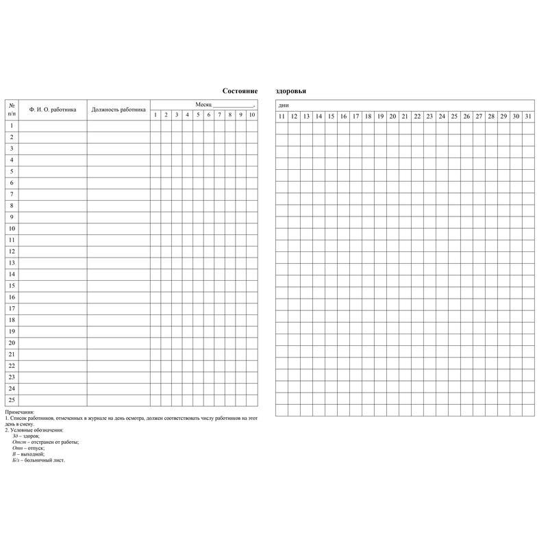 Журнал здоровья позволяет отслеживать состояние здоровья сотрудников, вести ежедневный учет числа работников предприятия или организации. Формат А4. Мягкий переплет, скрепка. Внутренний блок -офсетная бумага, 28 листов..