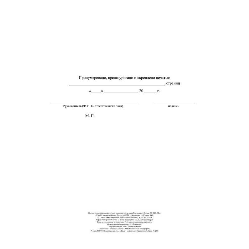 Ведение журнала регистрации инструктажа по охране труда на рабочем месте является обязательной процедурой проведения инструктажей по охране труда на рабочем месте и важным условием трудовых отношений, которые регламентируются ч. 3 ст. 219 Трудового кодекса РФ. Журнал регистрации инструктажа по охране труда на рабочем месте ведется специалистом по охране труда или иным уполномоченным работником организации, на которого приказом работодателя возложены обязанности по проведению инструктажа (первичного, повторного, внепланового) по охране труда на рабочем месте.